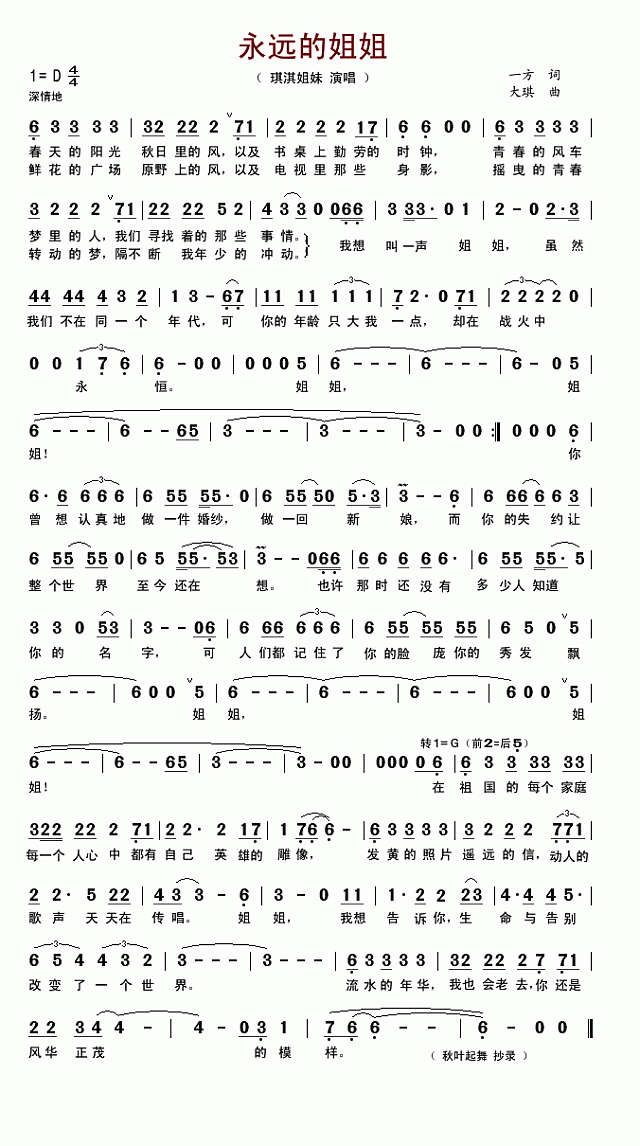 永远的姐姐是由简谱网提供的简谱,包括永远的姐姐简谱以及更多简谱图片请关注简谱吧