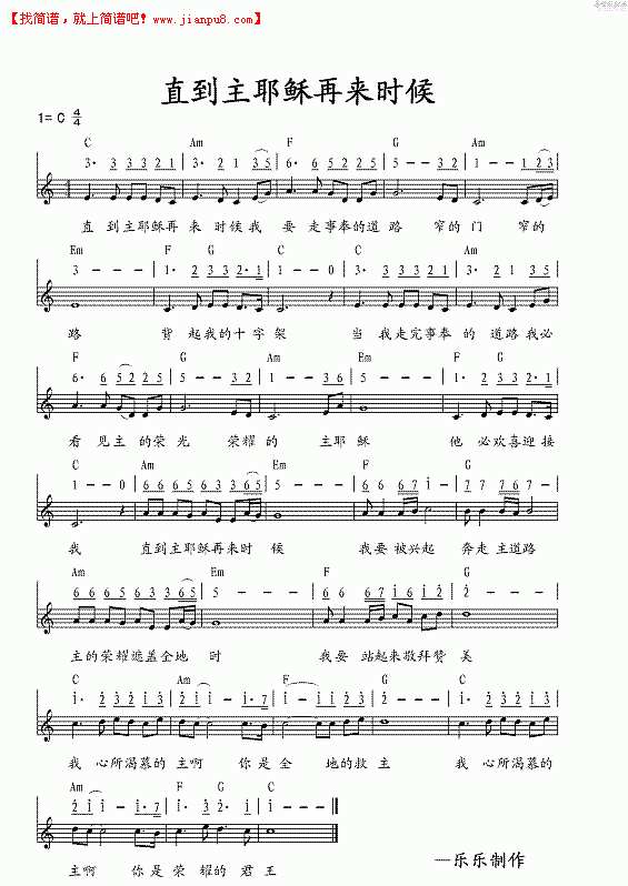 直到耶稣再来时候吉他谱
