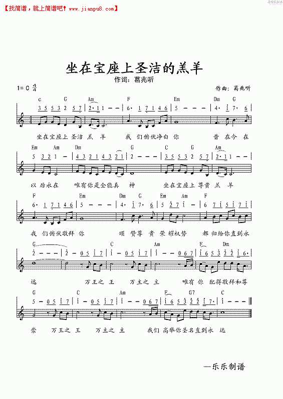 歌词提示:坐在宝座上 圣洁羔羊 我们俯伏净白那你...