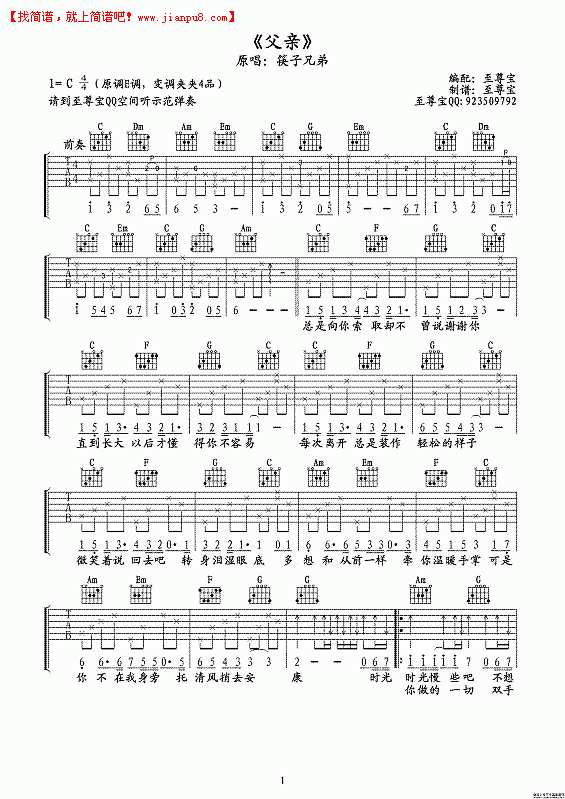 父亲吉他谱吉他谱