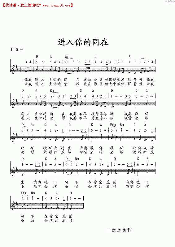 进入你的同在吉他谱