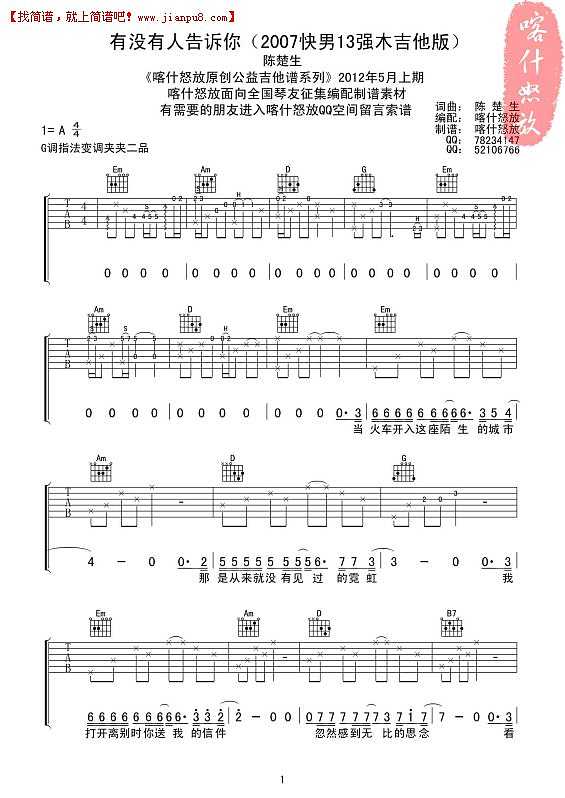 陈楚生《有没有人告诉你“喀什盛开吉他谱