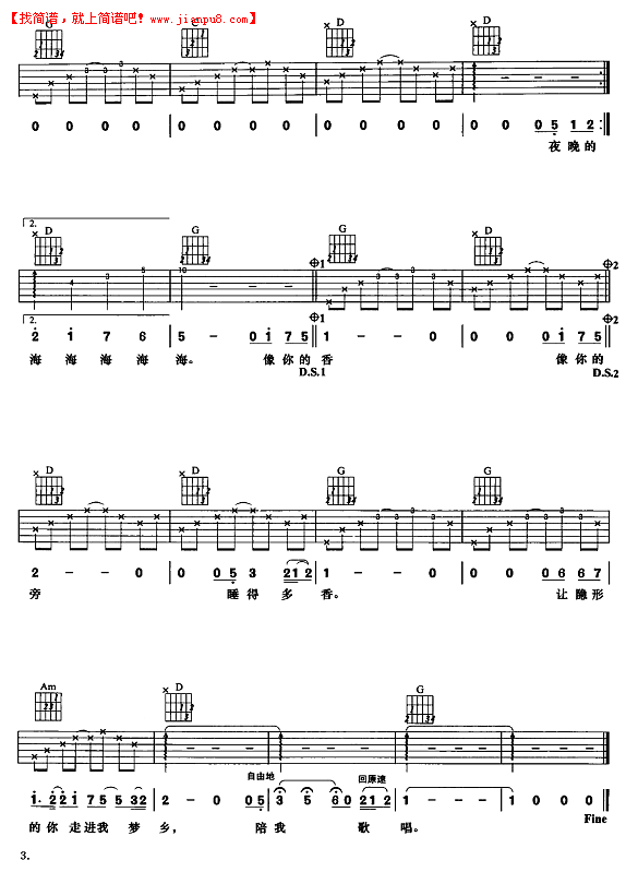 姑娘吉他谱