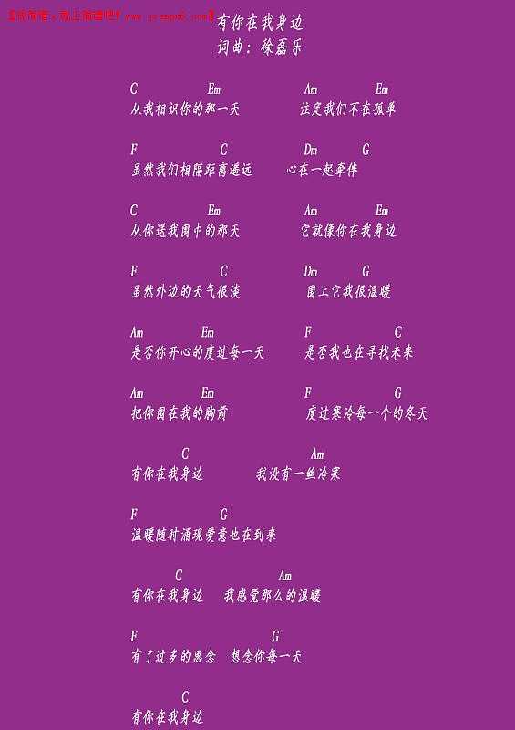 演唱:徐磊乐 歌词提示:从我想识你的那一天 注定我们不再孤单...